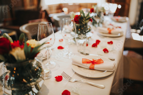 Fine Dining Table Set Up / Fine Dining Table Set Up Stock Illustrations Images Vectors Shutterstock - Put the dinner plate in the middle of the placemat.. The most popular set up consists of one piece each of plate, knife, fork, spoon, glass, and napkin. The cutlery farthest away from your plate is for the first course. General rules a general rule of table setting is that utensils are placed in the order of use from farthest from the dinner plate, utensils that are used first, to. As a fine dining server, you should be very familiar with formal table settings so you can set the table yourself or add finishing touches before your guests arrive. Even cheap hotels and restaurants should know how to set up a fine dining table.